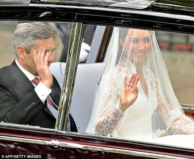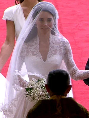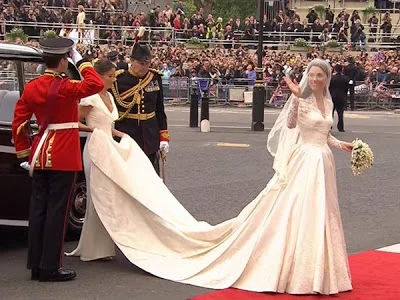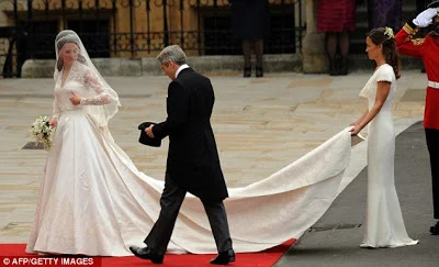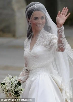 I was (well, am at this point because the celebration is still going on) one of those who set the alarm for 2:45am in order to watch all the live coverage of the Royal Wedding. I'm sure most of you have seen photos of the newly named Duchess of Cambridge's wedding gown! But she looks absolutely stunning, and the gown is equally amazing...I just can't help posting photos...