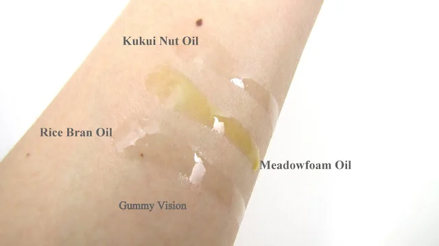 None of the oils felt heavy or greasy, and sink in pretty quickly. Rice Bran Oil felt the silkiest and smoothest. It also sunk in the quickest. Meadowfoam Oil was the least smooth feeling of the 3, but in a strange way felt the closest to a traditional moisturizer (well as close as an oil can feel to a cream based moisturizer!!). Kukui Nut Oil felt almost as silky and weightless as Rice Bran Oil. I do make sure to apply any of these oils over damp skin. Oh, and I forgot to mention that all 3 of these oils actually make my slightly oily chin and nose even less oily!!