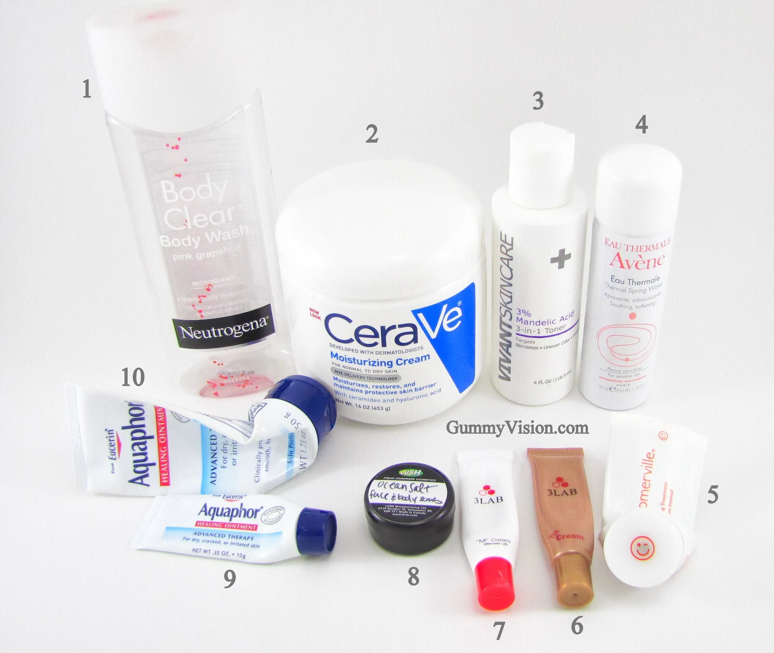 6. 3Lab The Cream sample - Used this on my neck and it was very moisturizing, with consistency like a creamy honey. I'd only consider purchasing if you are on the dry side.